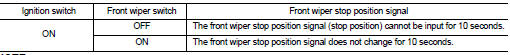When a front wiper stop position signal is in the conditions listed below, IPDM E/R stops power supply to wiper after repeating a front wiper 10 seconds activation and 20 seconds stop.