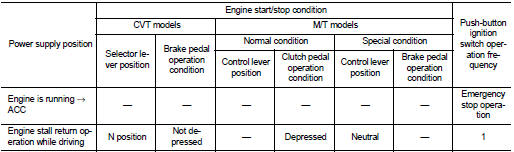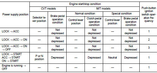 POWER SUPPLY POSITION CHANGE TABLE BY PUSH-BUTTON IGNITION SWITCH OPERATION