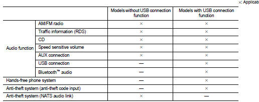 • After removing the battery of the audio unit, the authentication of the anti-theft code is required. The operating procedure: refer to AV-23, "Work Procedure".