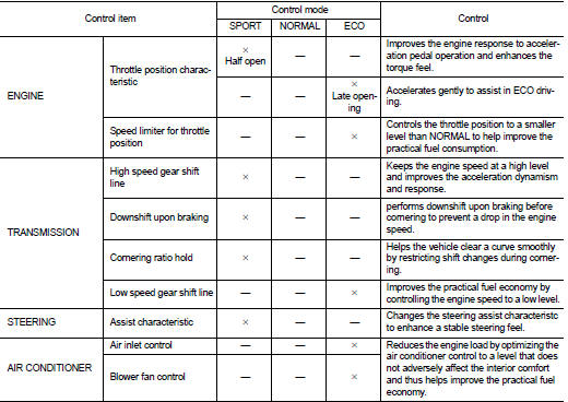 • For details on the engine control, refer to EC-67, "NISSAN DYNAMIC CONTROL SYSTEM : System Description" (MR16DDT) and EC-486, "NISSAN DYNAMIC CONTROL SYSTEM : System Description" (HR16DE).