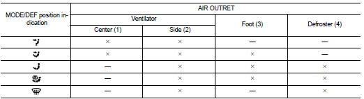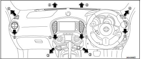 Ventilation system is controlled by A/C auto amp. (AUTOMATIC AIR CONDITIONING) or A/C control (MANUAL AIR CONDITIONING and MANUAL HEATER). For details of air conditioner system, refer to HAC-17, "System Description" (AUTOMATIC AIR CONDITIONING), HAC-203, "System Description" (MANUAL AIR CONDITIONING) or HAC-315, "System Description" (MANUAL HEATER).