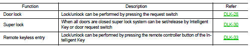 Refer to DLK-30, "SUPER LOCK FUNCTION : System Description".