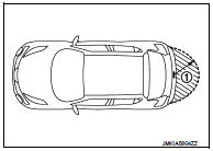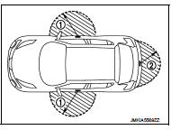 The outside key antenna detection area of back door open function is in the range of approximately 80 cm (31.50 in) surrounding the back door opener switch (1). However, this operating range depends on the ambient conditions.