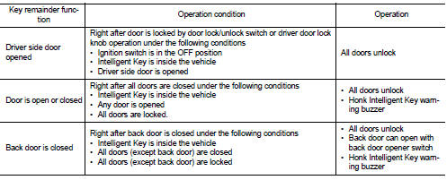 • The above function operates when the Intelligent Key is inside the vehicle.