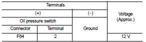 4. Check voltage between the oil pressure switch harness connector and ground.