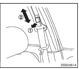 • After adjustment, release the adjustment button and try to move the shoulder belt anchor up and down to make sure it is securely fixed in position.