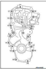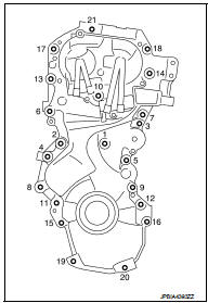 8. Remove front cover with the following procedure: a. Loosen mounting bolts in reverse order as shown in the figure.