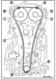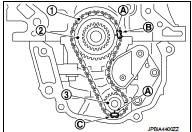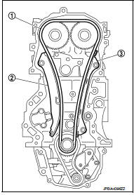 If timing chain is difficult to remove, remove camshaft sprocket (EXH) first to remove timing chain.