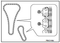 Check for cracks (A) and any excessive wear (B) at link plates and