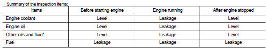 Inspection for Leakage The following are procedures for checking fluids leakage, lubricates leakage, and exhaust gases leakage.