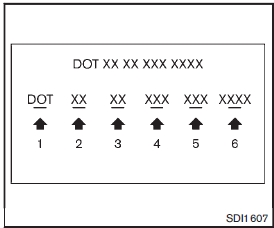 1. DOT: Abbreviation for the “Department of Transportation”. The symbol can be placed above, below or to the left or right of the Tire Identification Number.