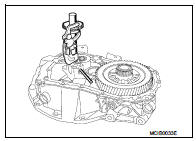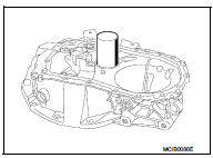 1. Remove drain plug and gasket from clutch housing, using a socket [Commercial service tool] and drain gear oil.