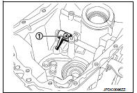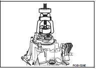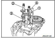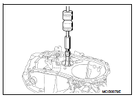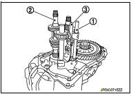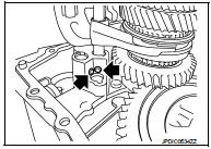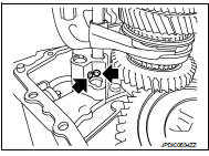 44. Check that the gear position is in the 3rd gear position. Press 5th-reverse shift fork and shift to 5th gear.