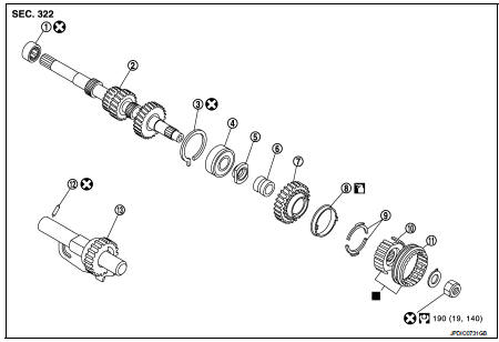 An adequate adjusting shim must be selected after replacing mainshaft, mainshaft