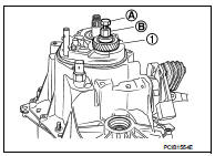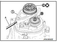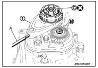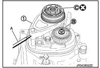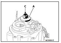 4. Install adjusting plate (A) [SST: KV32300QAP], suitable washer, and suitable bolt (C) [M10 x 1.0] to mainshaft.