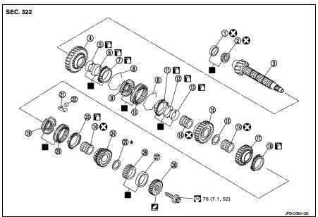 40. Apply gear oil to 5th-reverse baulk ring (1).