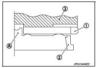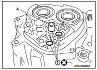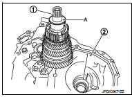 e. Install the dummy shim [1.60 mm (0.0630 in) thickness] (A) of dummy shim set [SST: KV32300QAN] to the mainshaft.