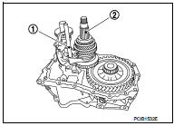 d. Install mainshaft assembly (1) to clutch housing (2).