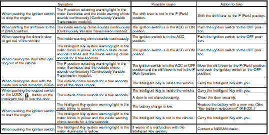 the Intelligent Key listed on the following chart or to help prevent the vehicle