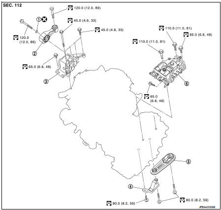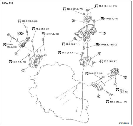 Rear torque rod bracket 1. Temporarily tighten mounting bolts in the numerical order as shown in the figure.
