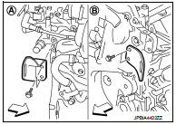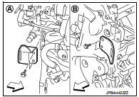 3. Remove engine mounting bracket (LH) through bolt-securing nut (B).