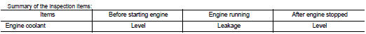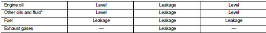 Inspection for Leakage The following are procedures for checking fluids leakage, lubricates leakage, and exhaust gases leakage.