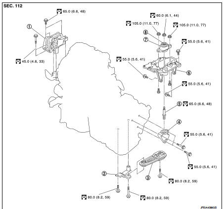 Engine Mounting Bracket (RH) • Tighten mounting bolts in the numerical order as shown in the figure.