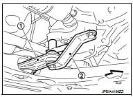 3. Remove engine mounting bracket (RH) (2), and engine mounting insulator (RH) (1).