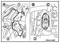 • During the removal, always be careful to prevent the vehicle from falling off the lift due to changes in the center of gravity.