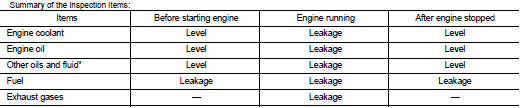 Inspection for Leakage The following are procedures for checking fluids leakage, lubricates leakage, and exhaust gases leakage.
