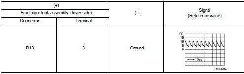 3. Check signal between front door lock assembly (driver side) harness connector and ground using oscilloscope.