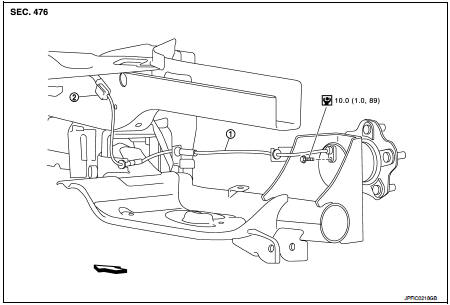 1. Rear LH wheel sensor 2. Rear LH wheel sensor harness connector
