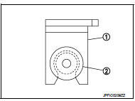 • Never twist rear wheel sensor harness when installing rear wheel sensor. Check that grommet (2) is fully inserted to bracket (1).