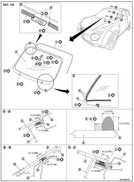 • Use a genuine Nissan Urethane Adhesive Kit (if available) or an equivalent and follow the instructions provided with it.