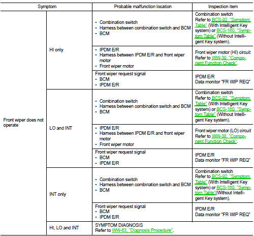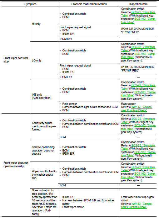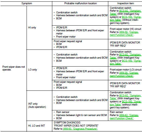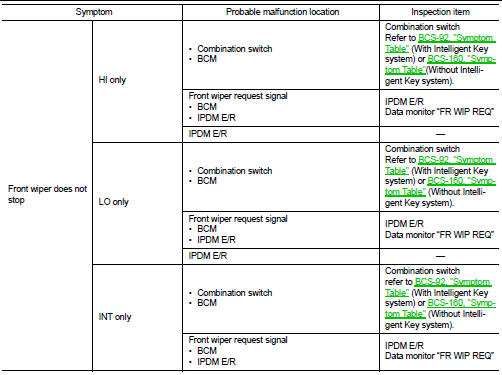 • IPDM E/R may stop the front wiper to protect the front wiper motor if any