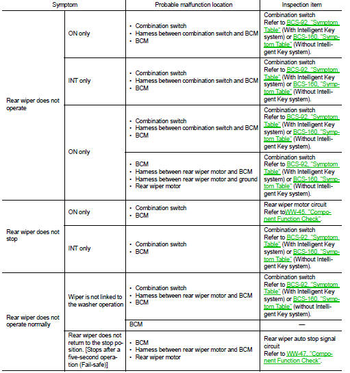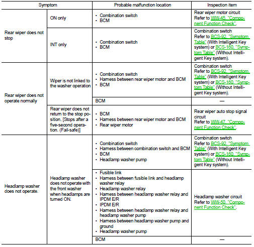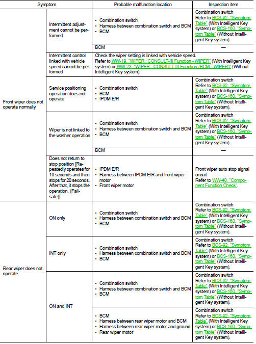 Nissan Juke Service and Repair Manual : Wiper and washer system symptoms